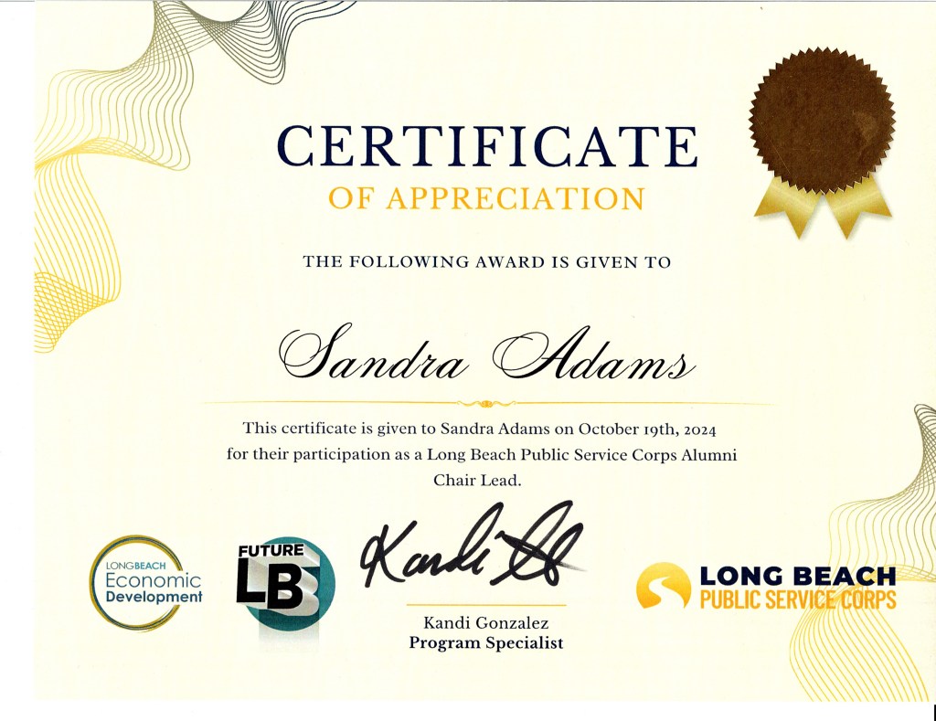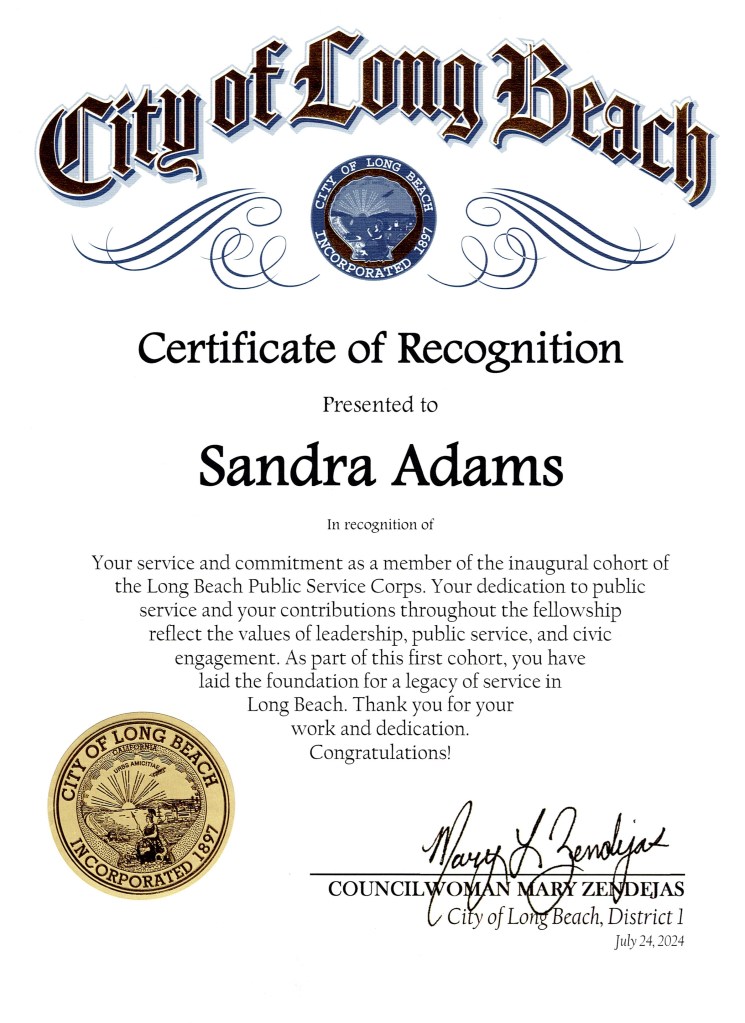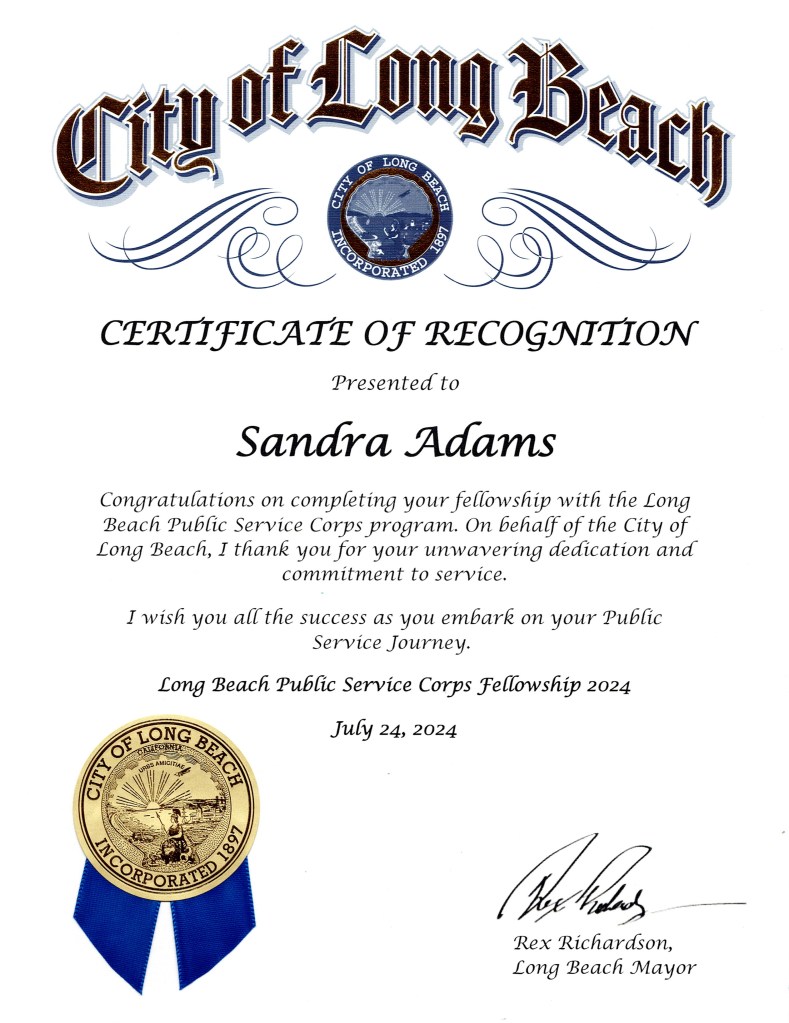 Richardson, for completing my fellowship with the Long Beach Public Service Corps and for my unwavering dedication and commitment to service.