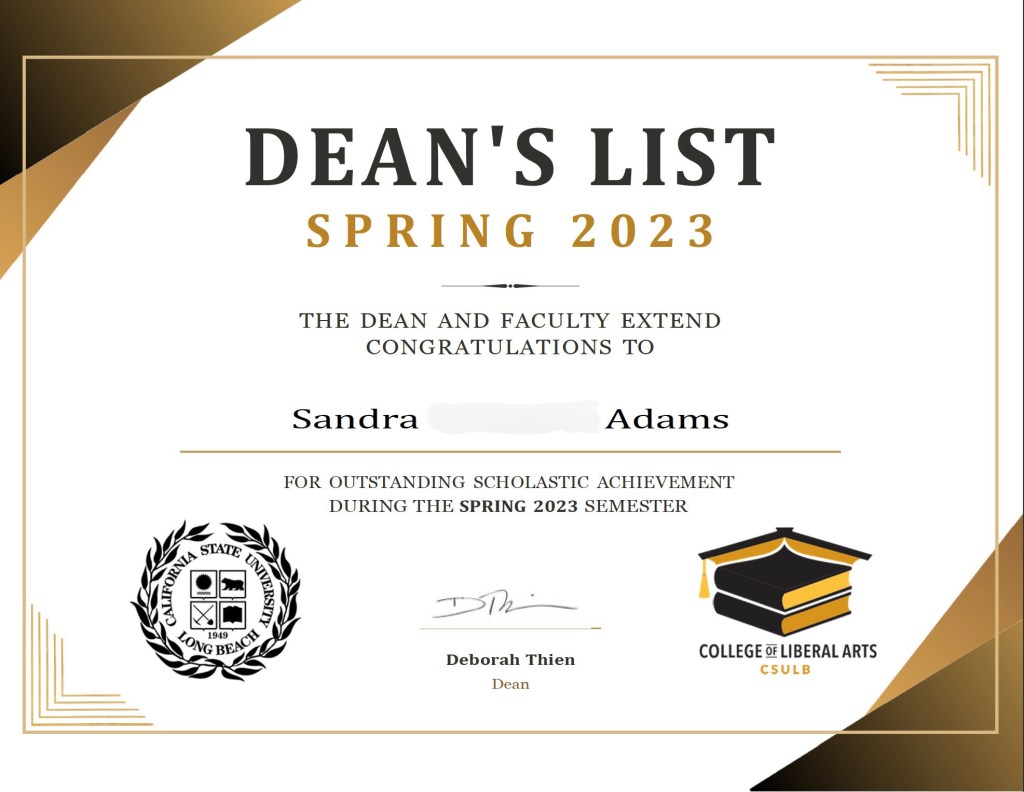 Honored for making the Dean’s List for
