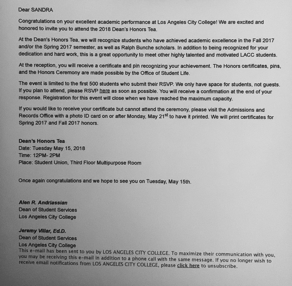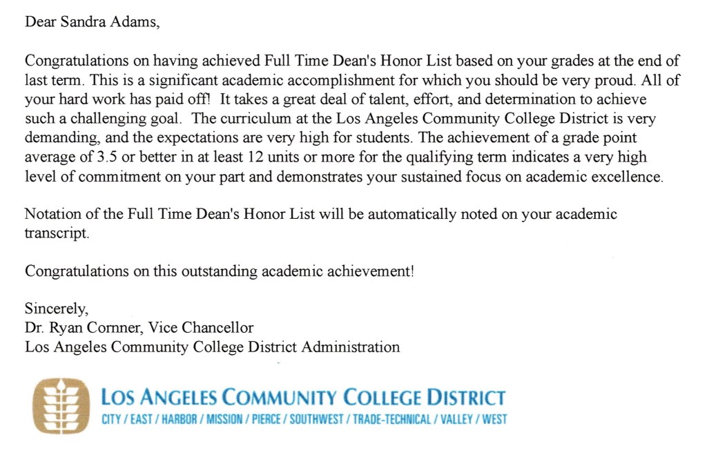 Dean’s Honor; Los Angeles Community College District