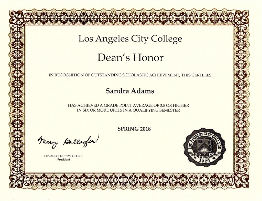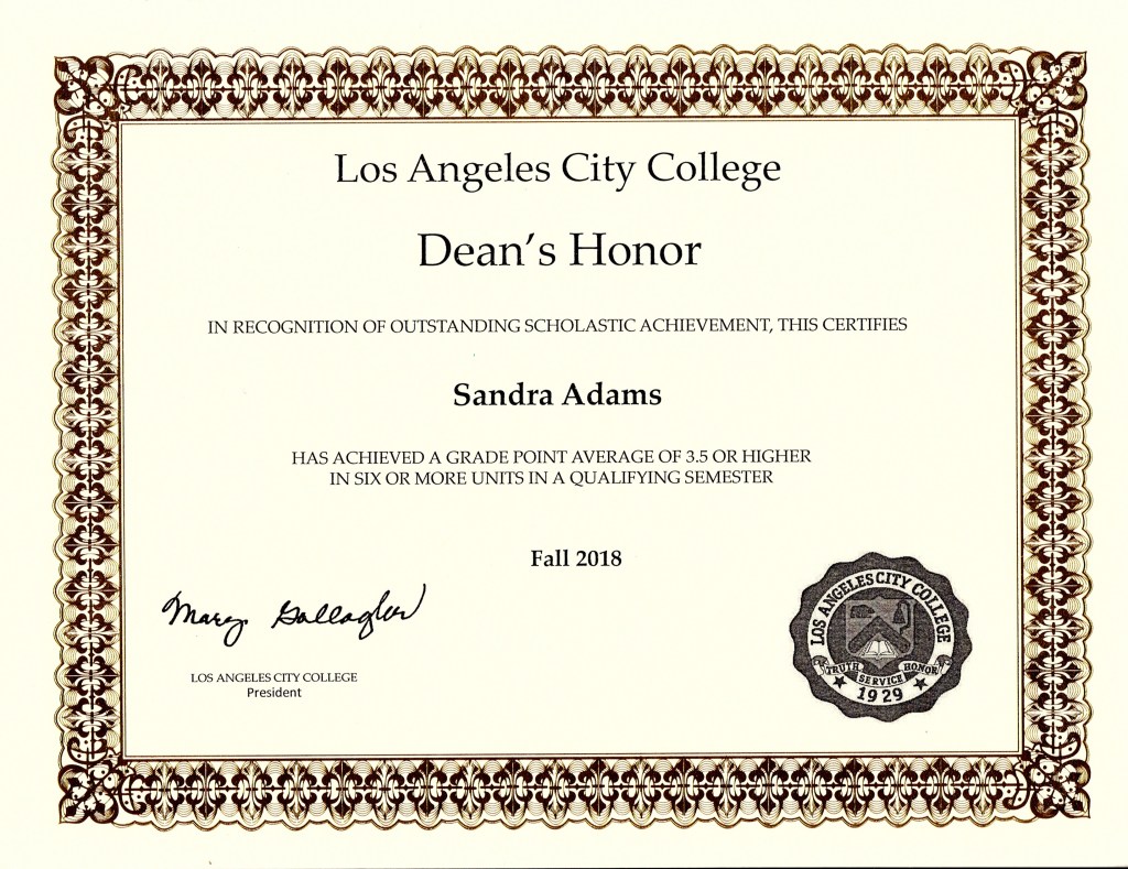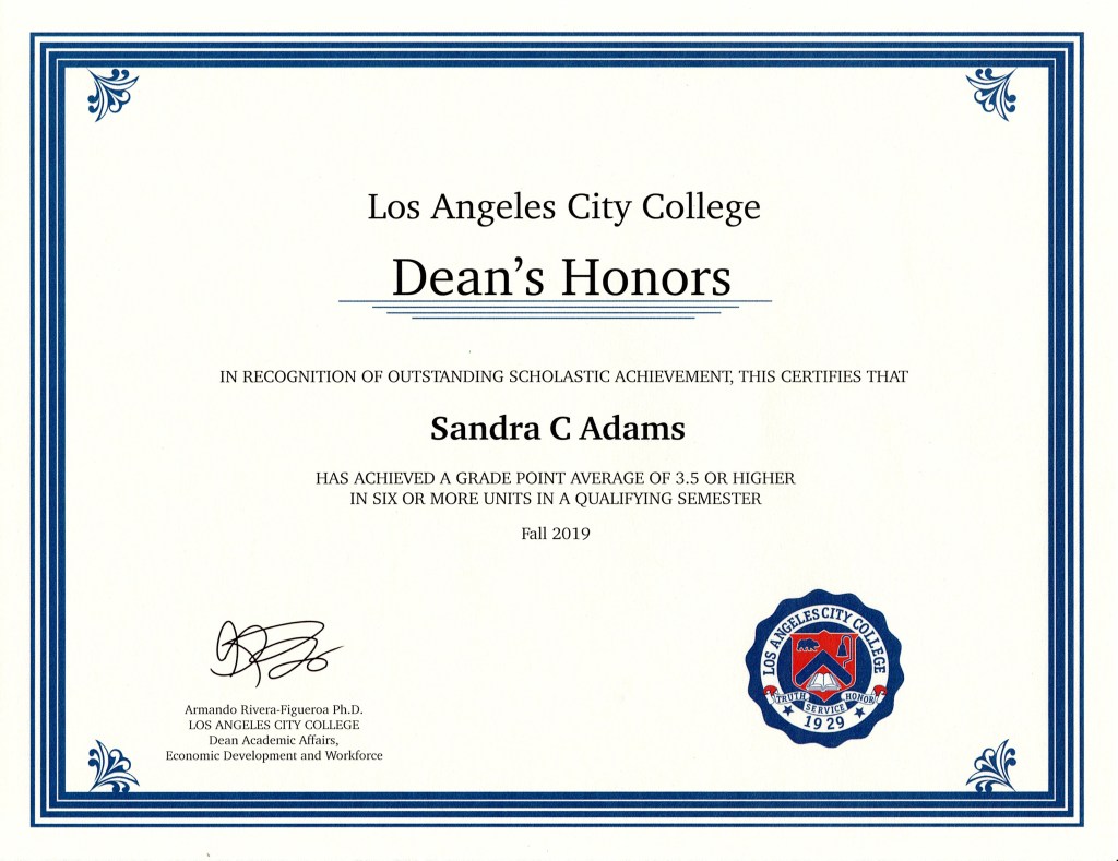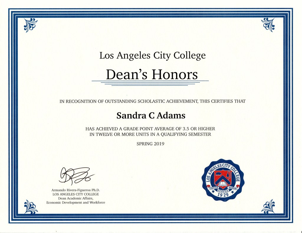 Dean’s Honor; Los Angeles City College: