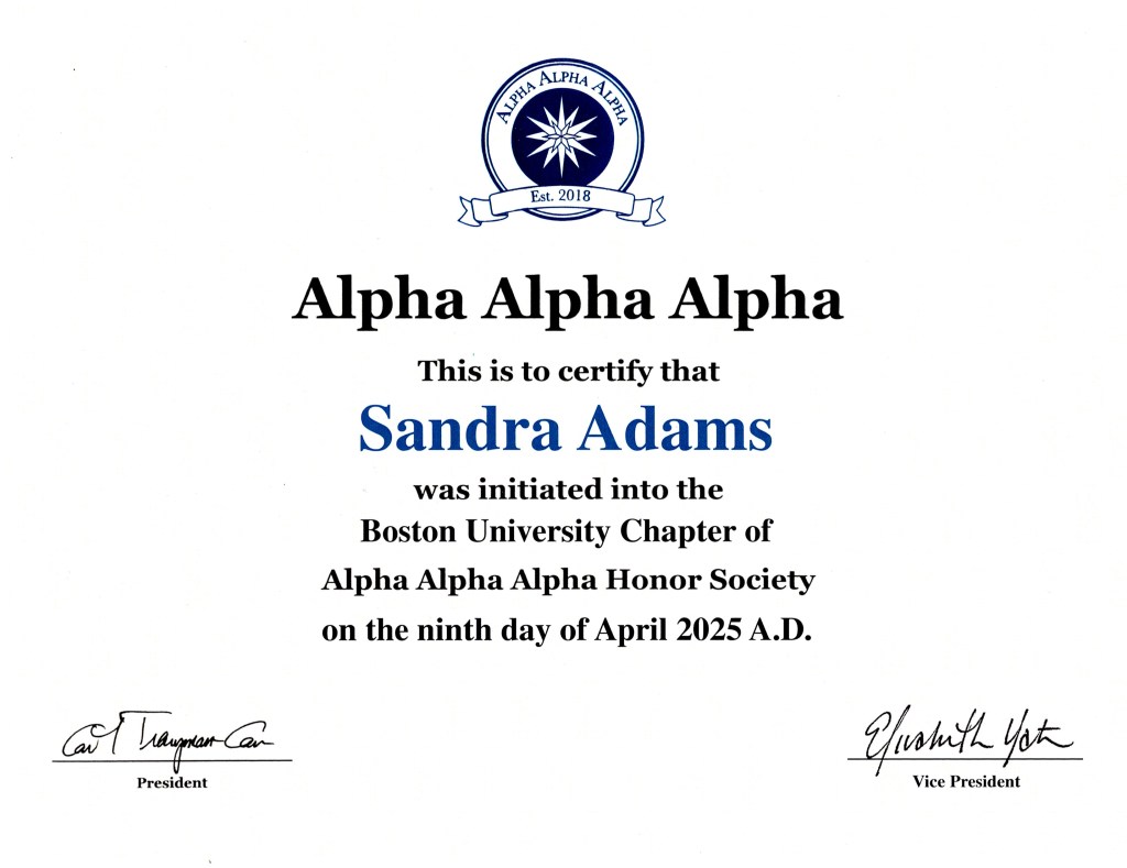 scholarships awarded twice. She is also a member of multiple honor societies, reflecting her dedication to academic excellence, leadership, and professional development.